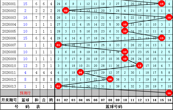 蓝球分析:最近10期蓝球号码遗漏期数分别为:5期、0期、4期、29期、2期、0期、24期、10期、12期、5期,上期开出蓝球号码01,本期蓝球注意温码,看好蓝球号码16。