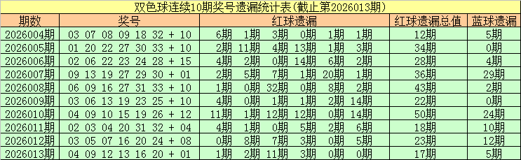 安队第2026014期双色球遗漏分析:(热码:遗漏0-3期,温码遗漏4-9期,冷码遗漏10期及以上)