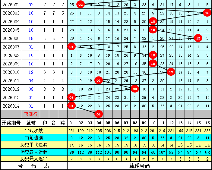 蓝球分析:最近偶数蓝球走势非常热,本期看好偶数蓝球继续热出,参考04、06、08、12。