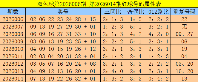 福彩双色球第2026014期奖号为:07 13 19 22 26 32 + 01,红球奇偶比为3:3,三区比为1:3:2,012路比为0:4:2,重号:13。