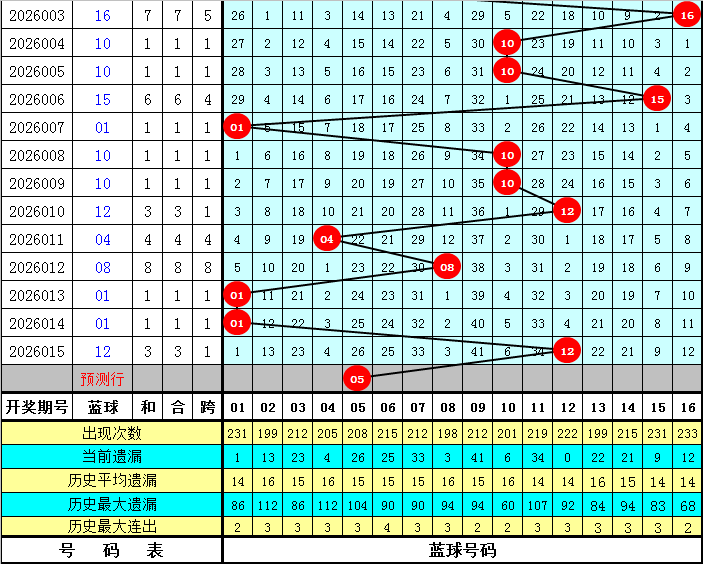 4、最大间距:最大间距近十期主要在05-16之间波动,上期最大间距为9,本期看好最大间距走高,关注最大间距12。