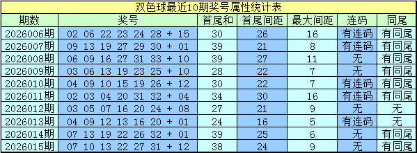 上期开奖:福彩双色球第2026015奖号为:07 10 13 22 27 31 + 12,红球和值为110,最大间距为9,奇偶比为4:2,三区比为2:2:2。