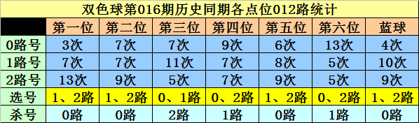 第26016期期奖号各点位012路重点分析表:(说明:0路指的是除3余0的号,1路是除3余1,2路是除3余2的号)