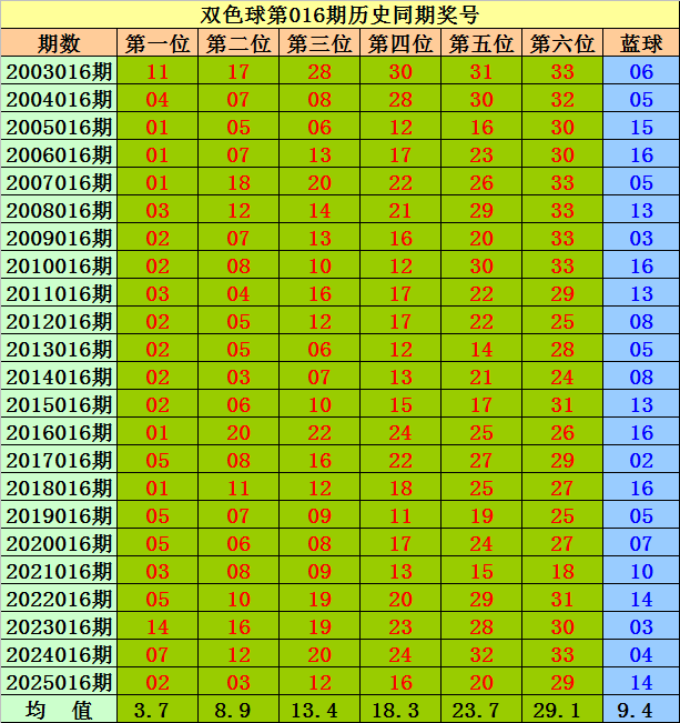 双色球第016期历史同期蓝球大小比累计为11:12,奇偶比累计为11:12,蓝球012路分布为4:10:9,蓝球1、2路号出现概率为82.6%,第26016期蓝球杀余数0路号。