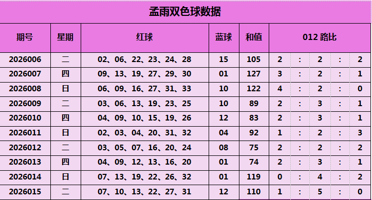 孟雨双色球本期推荐: