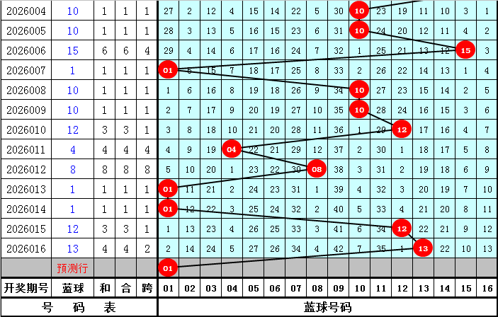 蓝球前10期开出号码为:01→10→10→12→04→08→01→01→12→13。