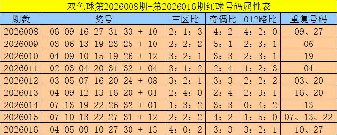 红球012路比:上期红球012路比开出3:2:1,最近9期红球012路个数比为17:26:11,本期防1路红球轮空,参考红球012路比3:0:3。