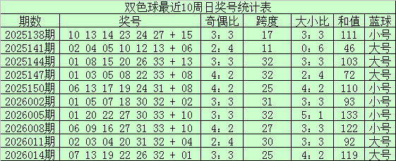 大小走势分析:上期开出大小比为2:4,上周日红球大小比4:2,最近十周日大小红球走势基本平衡,本期预计大号红球转热,关注大小比4:2。