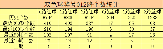 双色球第2026017期红球号码012路分析