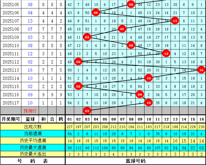 开奖回顾:双色球第2025117期开出奖号:06 08 17 20 25 33 + 10。其中,红球号码012路比为2:1:3,其中2路号码表现活跃。蓝球号码为1路号码。