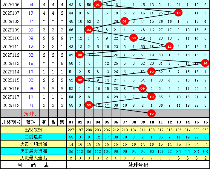 蓝球分析:蓝球大号近期表现活跃,本期重防大号蓝球热出,关注蓝球10、12、13、14。