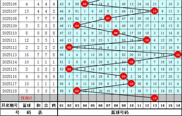 在历史同期第119期开奖中:蓝球号码012路比为8:7:6,本期蓝球参考1路号码,独蓝看好13。