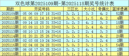 第2025118期双色球奖号开出:01、10、11、16、24、26 + 03,红球奇偶比为2:4,三区比为3:1:2,大小比为2:4。