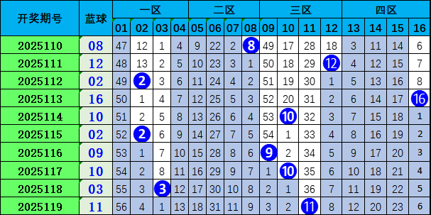 上期蓝球开出奇数号码11。近期奇偶球比值3:7,偶数球走势上升,本期看好奇数球热出,推荐号码03。