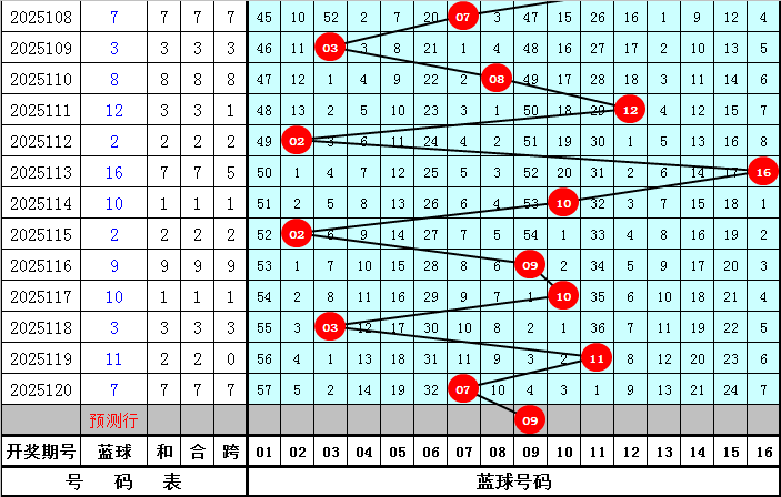 蓝球前10期开出号码为:12→02→16→10→02→09→10→03→11→07。