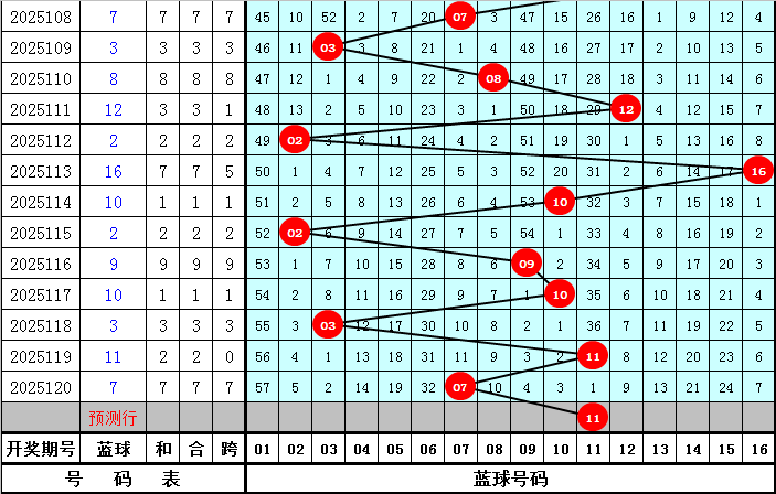 蓝球分析:上期开出蓝球奖号07为奇数、小 号。