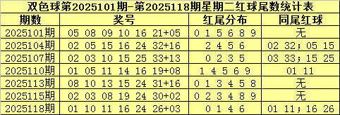 第一二位红尾分析:最近7周星期二红球第一二位尾数分别开出:58、25、23、15、80、23、10,同尾号开出较多;在最近7周星期二尾数分布中,尾数4、6、7、9轮空,尾数1、3、6出现1个,2、8出现2个,5出现5个,上周星期二开出尾数组合1-0为奇偶组合,本周星期二继续看好奇偶尾数平衡出现,关注尾数组合4-9。