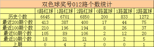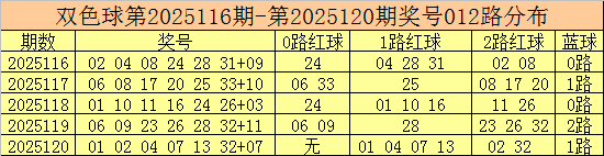 双色球第2025121期红球号码012路分析