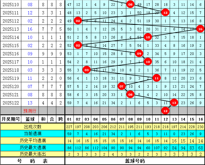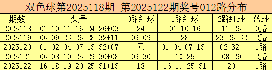 开奖回顾:双色球第2025122期开出奖号:16 18 19 20 25 31 + 13。其中,红球号码012路比为1:4:1,其中1路号码表现活跃。蓝球号码为1路号码。