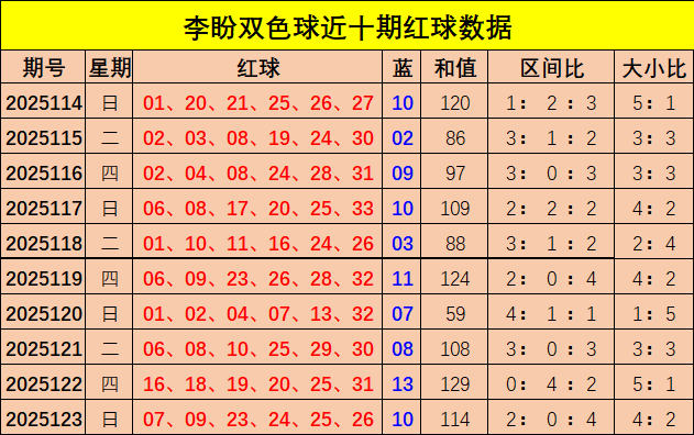 开奖回顾:双色球上期开出红球红球07 09 23 24 25 26,蓝球10,和值114,区间比2:0:4,大小比4:2。