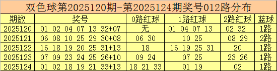 双色球第2025125期红球号码012路分析