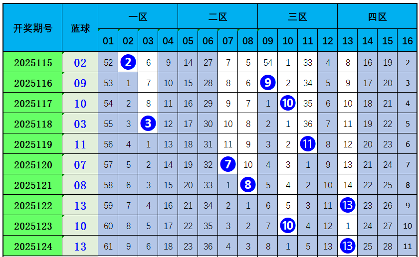上期开出奇数蓝球13,近10期开出奇数号码6次,开出偶数号码4次,奇偶比6:4,近期奇数奖号出号较热。本期预计开出偶数号码:12。
