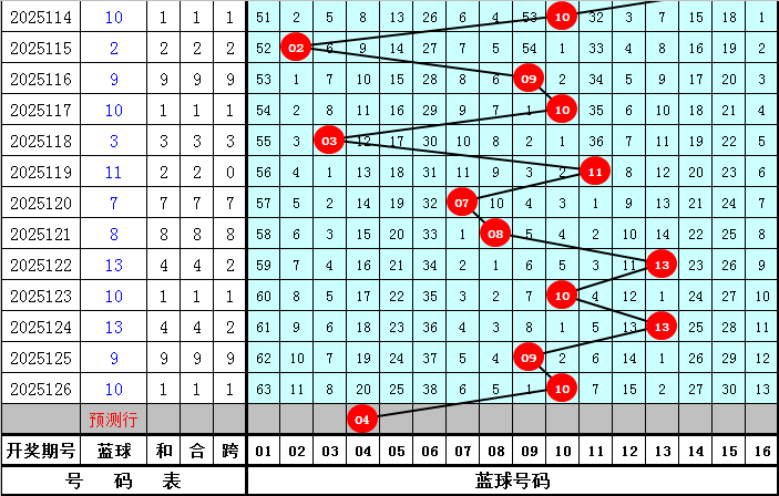 福彩双色球第2025126期开奖号码为:02 12 13 16 19 25 + 10。红球三区比为1:4:1,奇偶比为3:3,012路比为1:4:1,和值为87,蓝球开出1路号码。