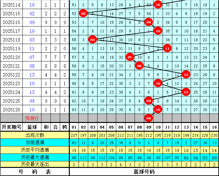 蓝球分析:最近9周星期二蓝球分别开出号码:05、16、13、08、16、02、03、08、13,本周星期二看好蓝球开出奇数号码,参考蓝球号码09。