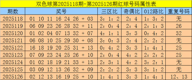 福彩双色球第2025126期奖号为:02 12 13 16 19 25 + 10,红球奇偶比为3:3,三区比为1:4:1,012路比为1:4:1,重号:12、13。