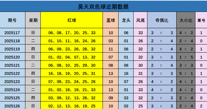 上期奇偶比3:3,近10期奇偶比中,有5期比值为3:3,有3期比值为2:4,有2期比值为4:2,有1期比值为1:5。综合分析,本期推荐奇偶比为2:4。
