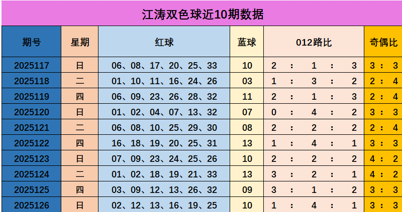 江涛双色球本期综合推荐: