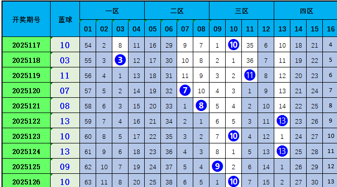 012路分析:蓝球开出1路号码10。