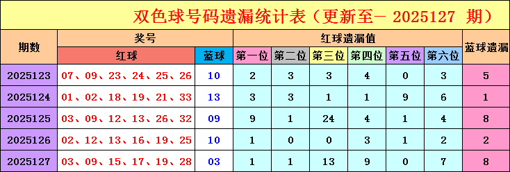 三区定位分析:(在本文中遗漏值3以内的红球为热号,遗漏值4-9之间的红球为温号,遗漏值9以上的红球为冷号。蓝球热号遗漏值在5以内,温号遗漏值在6-15之间,冷号遗漏值在15以上。)