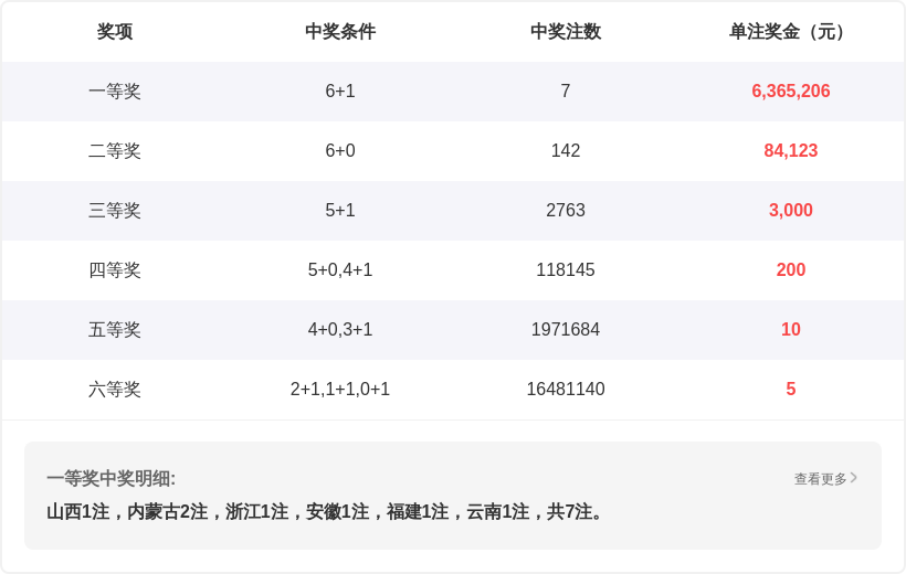双色球25128期开奖结果02 10 18 19 24 27 + 01,大小比4:2,跨度25,蓝球号码质合为质数、大小为小号。