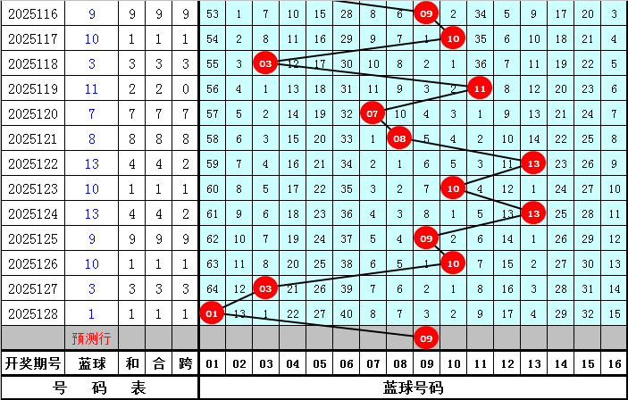 在历史同期第129期开奖中:蓝球号码012路比为4:11:5,本期注意0路蓝球出现,关注蓝球号码09。