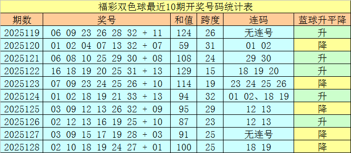 上期开奖:福彩双色球第2025128奖号开出:02 10 18 19 24 27 + 01,红球号码和值为100,首尾间距为25,包含连号:18 19。