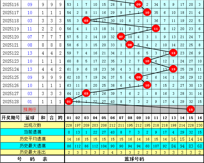 和值跨度分析:上期和值开出100,对比第2025127期和值上升了9个点位,本期预计和值在大号区域热出,看好出现在85附近。
