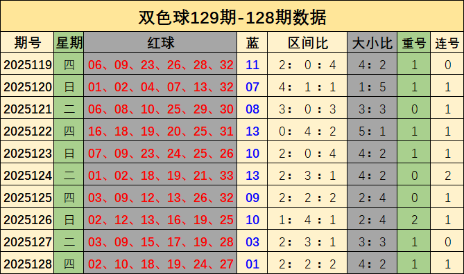 上期回顾,开出奖号:红球02、10、18、19、24、27,蓝球01。红球号码大小比为4:2,三区比为2:2:2,奇偶比为2:4。本期红球开出重号19,开出连号18 19.