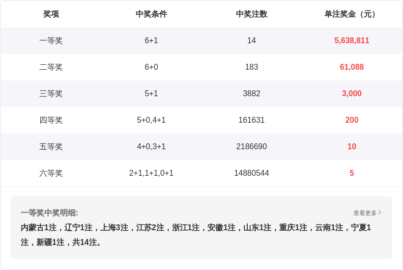 双色球25130期开奖结果01 05 08 14 19 23 + 06,大小比2:4,三区比3:2:1,跨度22,奇偶比4:2。