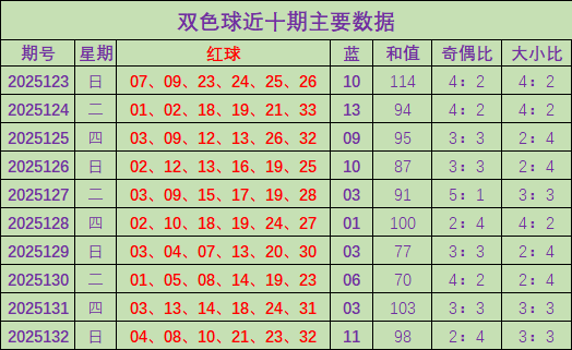 双色球上期开出奖号04 08 10 21 23 32+11,奇偶比2:4,大小比3:3,和值98
