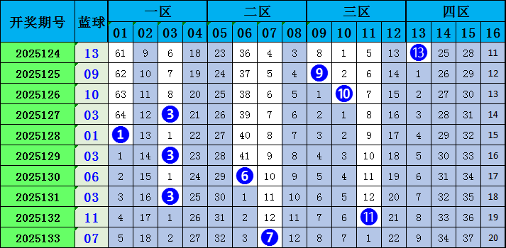三区定位分析:(在本文中遗漏值3以内的红球为热号,遗漏值4-9之间的红球为温号,遗漏值9以上的红球为冷号。蓝球热号遗漏值在5以内,温号遗漏值在6-15之间,冷号遗漏值在15以上。)