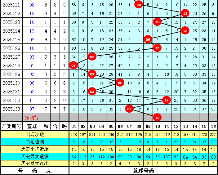 蓝球分析:上期蓝球开出号码07,下降4个点位,最近10期蓝球号码升平降分别为:升、降、升、降、降、升、升、降、升、降,本期防蓝球号码上升,一码蓝球关注10。