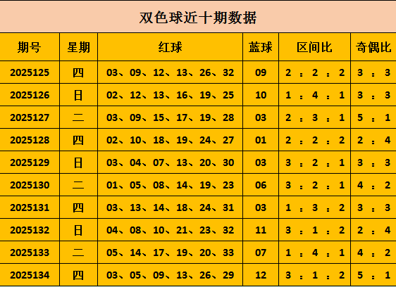双色球上期开出奖号:03 05 09 13 26 29+12,区间比3:1:2,奇偶5:41。