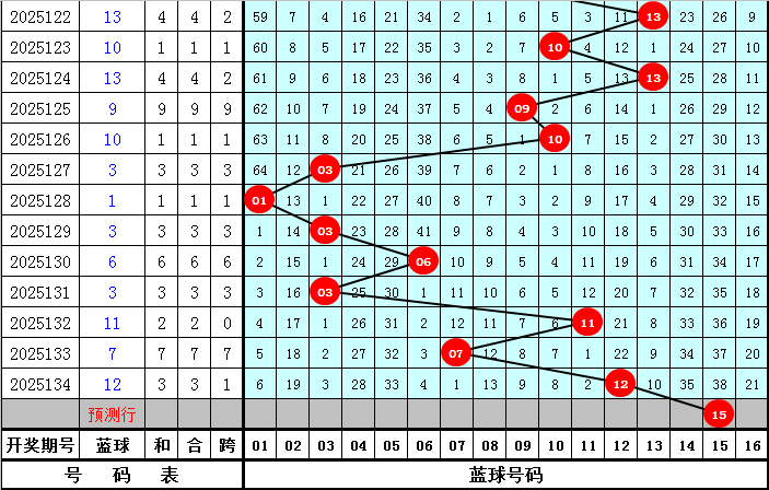 蓝球号码分析:最近30期蓝球号码质合比为16:14,最近10期蓝球质合比为6:4,最近5期蓝球分别为:06、03、11、07、12,本期蓝球关注合数号码,参考蓝球号码15。