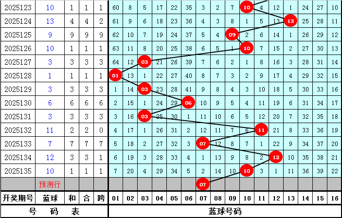 在历史同期第136期开奖中:蓝球号码012路比为5:8:6,本期蓝球参考1路号码,独蓝看好07。