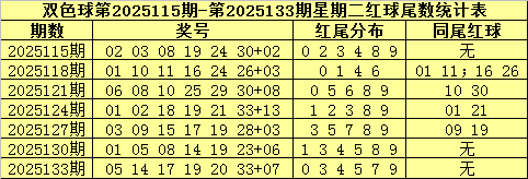 双色球第2025135期开出奖号为:01 02 05 09 25 32+10,红球尾数分布为1 2 5 9,包含同尾红球:02 32;05 25。