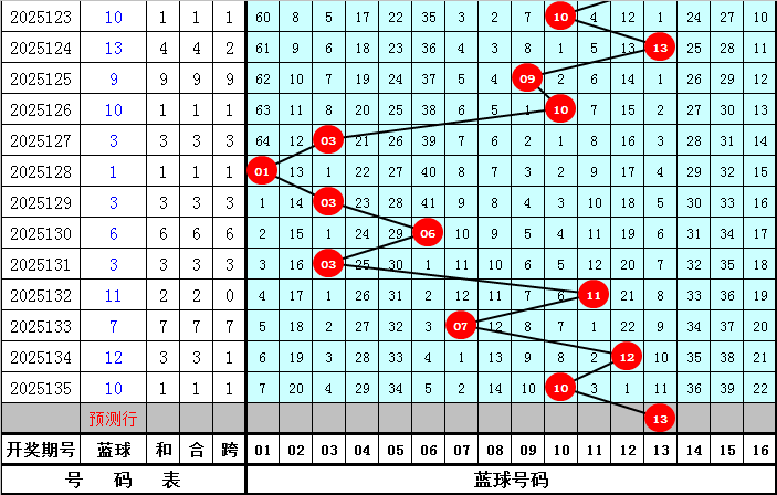 蓝球分析:最近10期蓝球号码遗漏期数分别为:2期、8期、64期、1期、41期、1期、12期、12期、22期、8期,上期开出蓝球号码10,本期蓝球注意温码,看好蓝球号码13。