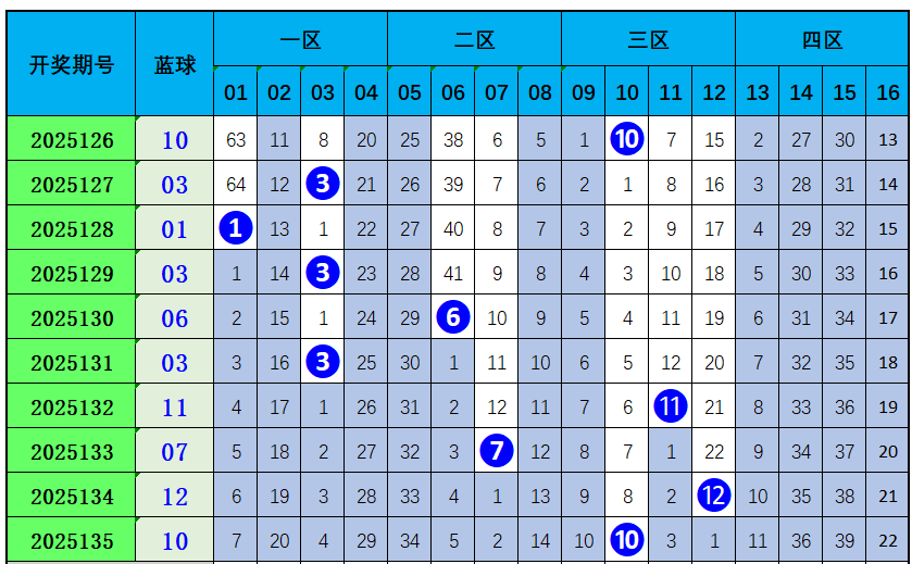 上期开出偶数蓝球10,近10期开出奇数号码6次,开出偶数号码4次,奇偶比6:4,近期奇数奖号出号较热。本期预计开出奇数号码:13。