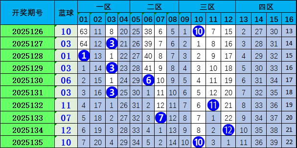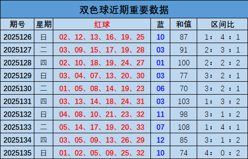 双色球上期开出奖号:01 02 05 09 25 32+10,和值74,区间比4:0:2