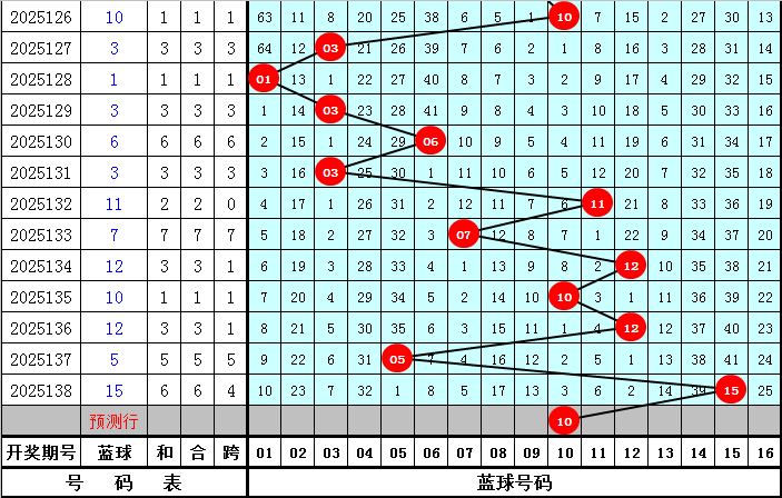 本期蓝球预计出现在:04、05、07、10、11之中,蓝球绝杀8码:01、02、03、06、12、13、14、16。